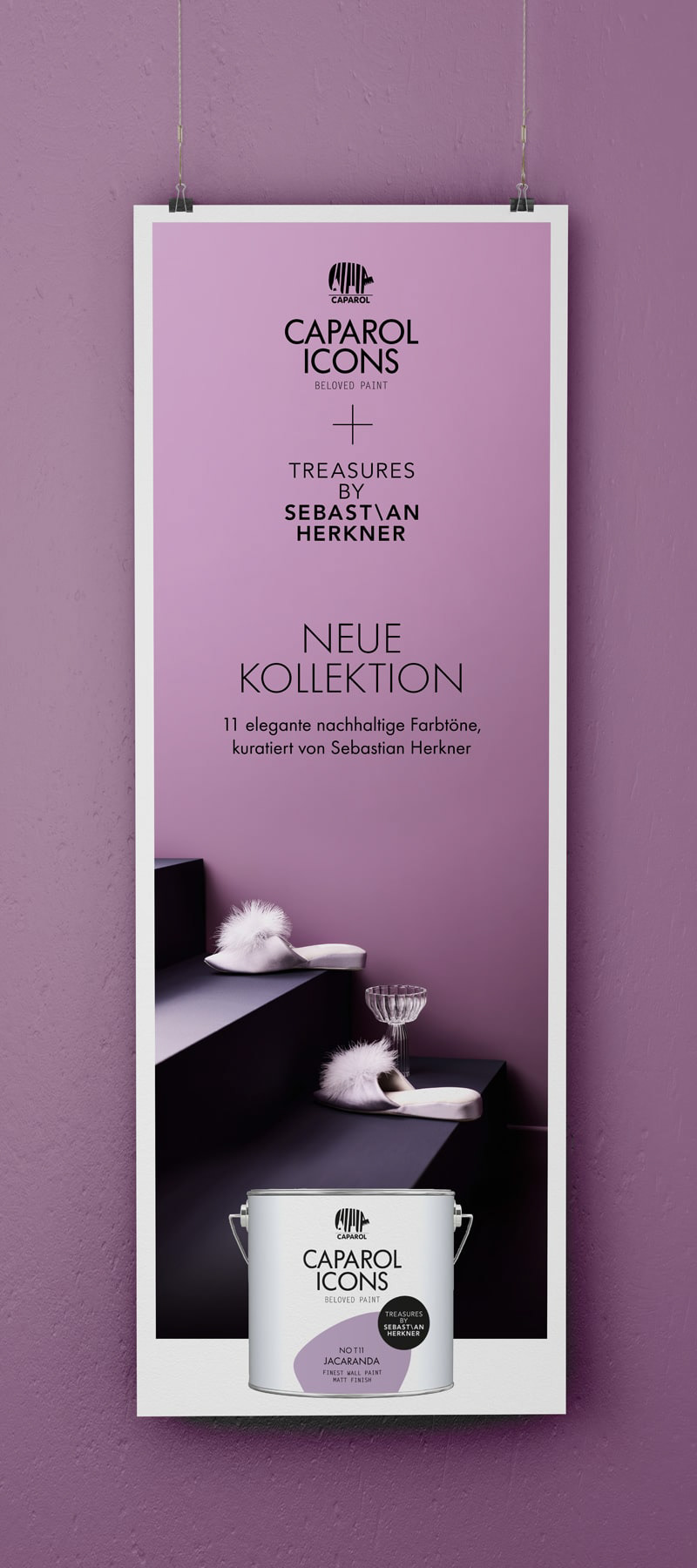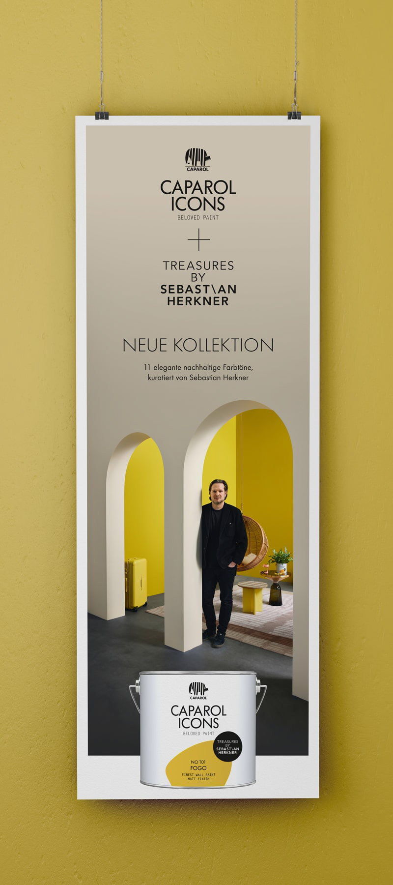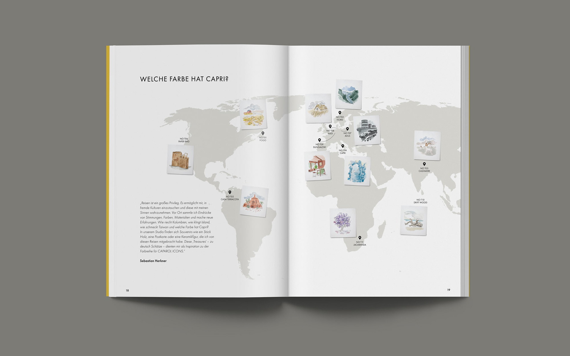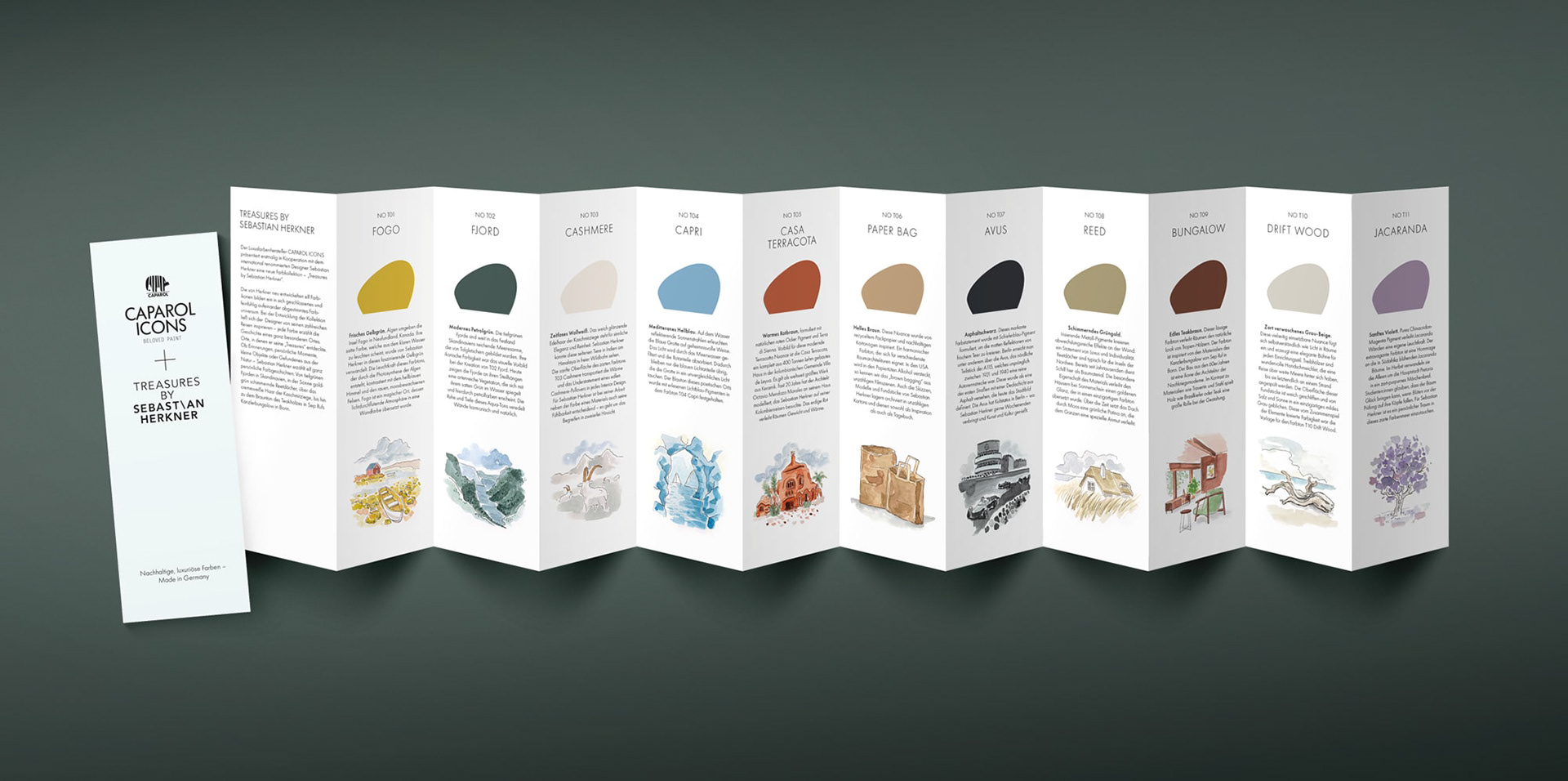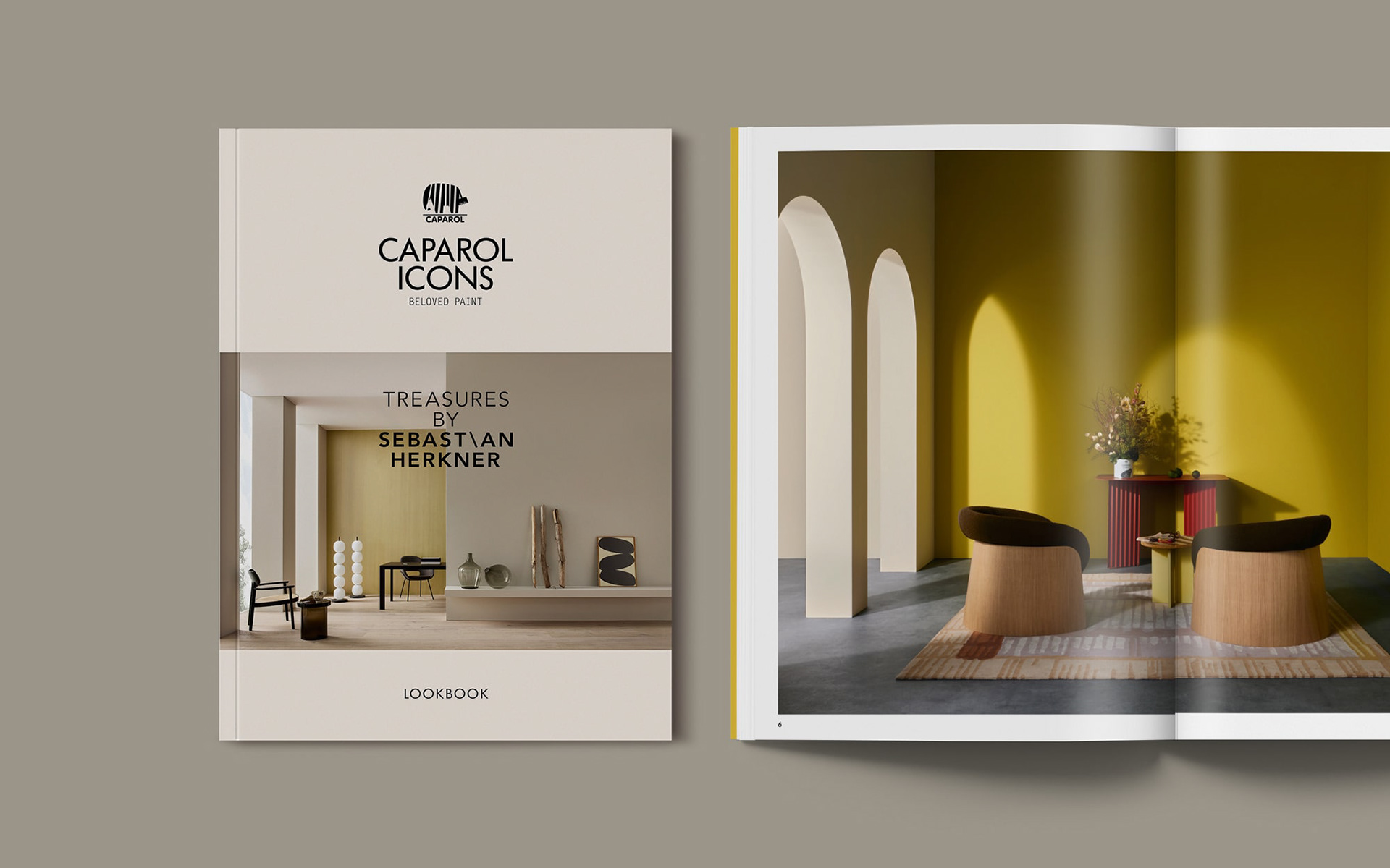 Artwork, Illustrationen, Gestaltung von Broschüren, Plakaten und Farbkarten für CAPAROL ICONS mit Interior-Fotos von Mark Seelen